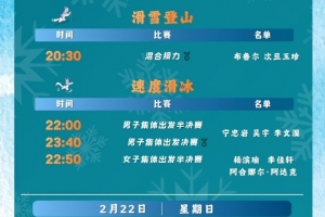 自由式滑雪女子U型场地技巧决赛中,李方慧、谷爱凌、张可欣、刘奕杉将携手出战。空中技巧混合团体决赛也将举行,徐梦桃、王心迪、李天马参赛。