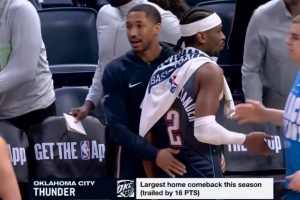 本场比赛,雷霆最多曾落后16分,最终加时完成逆转,也创造了球队本赛季主场最大分差的逆转。