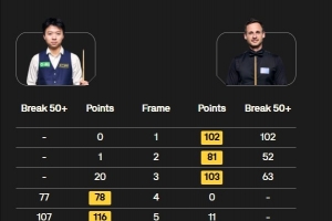 江俊打出单杆77、107分,大卫·吉尔伯特打出单杆102、52、63分,双方战至决胜局,最终江俊4-3战胜大卫·吉尔伯特晋级16强。